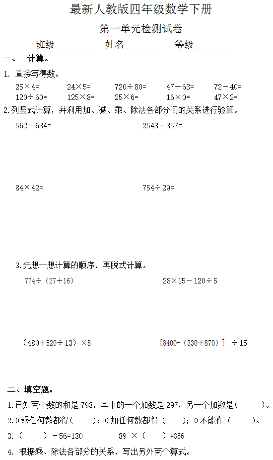 奥数 > 小学试题库 > 单元测试 > 数学单元测试 > 四年级数学单元测试上册 > 正文